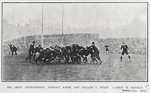 In the weeks leading up to the match, the Welsh had arranged two full ‘trial matches’ and a settled ‘Probables’ team seemed to be emerging, but more importantly the trials had solved the problem of whether to play seven or eight forwards; Wales decided to use a seven forward formation( 2-3-2) also used by the New Zealanders, rather than the traditional eight man British scrum, which allowed them to counter the tourists weight advantage by having a ‘free’ player to either support the play or retreat into the back row if needed.
