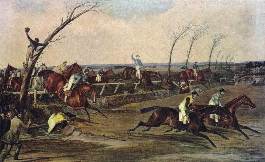 Just four horses lined up for the start of the race the following year, which The Duke won again this time in a time of 14 minutes. And in 1838, only three horses started the race, with The Duke, again ridden by Captain Becher, coming in third, behind the winner Sir William, ridden by Irish jockey, Allen McDonough, who usually wore a black scarf when riding.