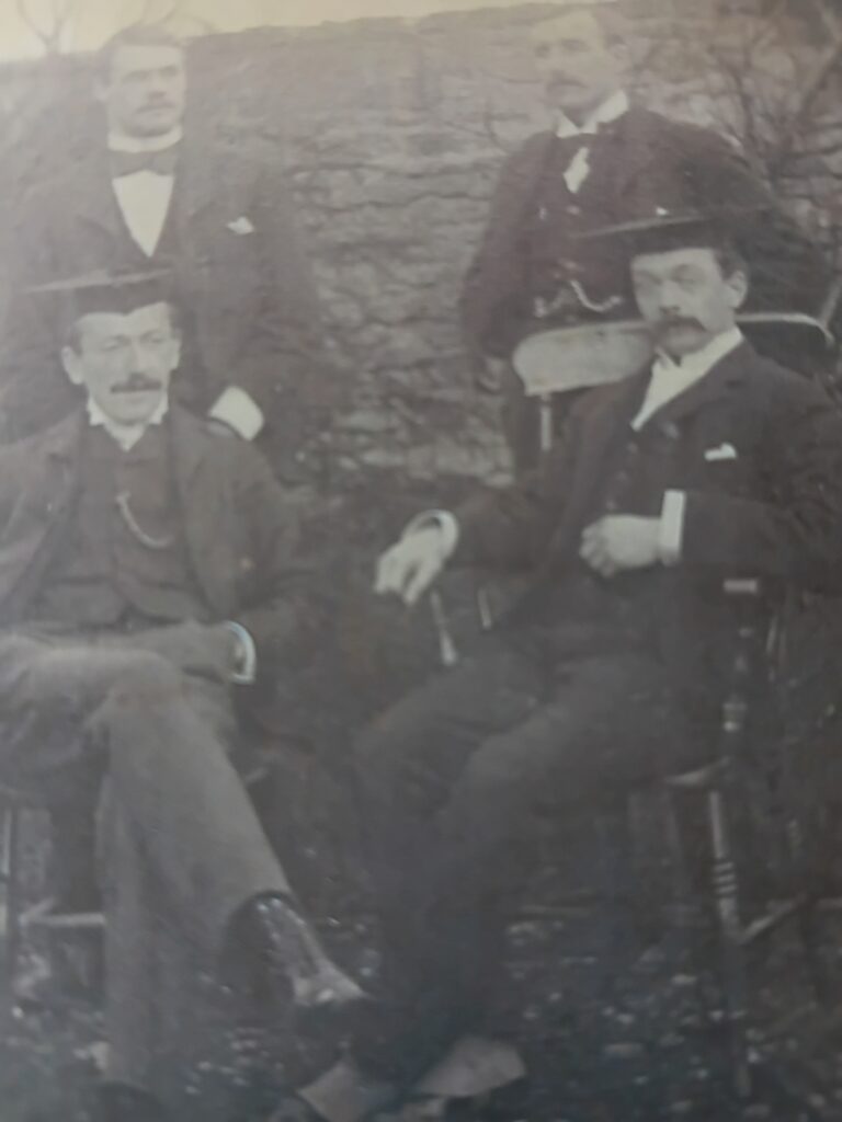 A young Gilbert Jessop (back left) at Burford Grammar School in 1894, posing with senior staff.