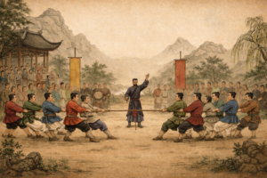 Known in ancient China as hook pulling, it was used to train warriors and test strength, later evolving as a competitive sport and a Royal pastime before becoming an Olympic event and was included because it was considered a legitimate high-level test of strength, endurance and team co-ordination.