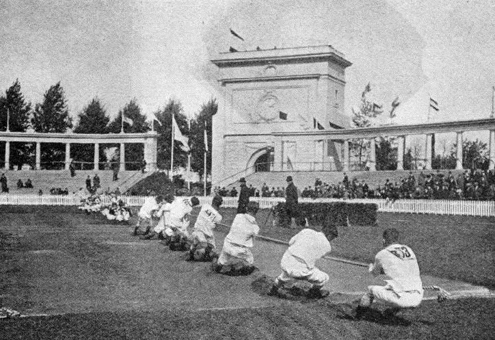 The modern revival of the ancient Greek Olympics in 1896 included a tug of war competition, with teams consisting of five or six pulling members and at the 1900 games in Paris, many of the teams featured athletes who were competing in other events, with the gold medal going to a combined team from Sweden and Denmark.