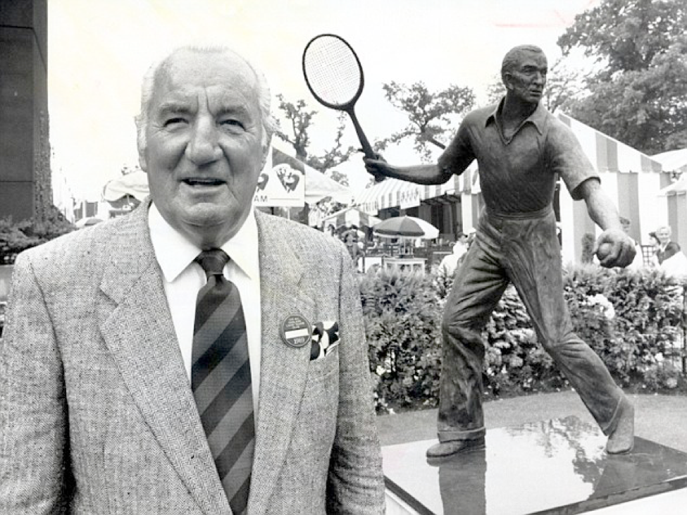 After several unsuccessful attempts to persuade the LTA to find a solution to his need for better financial support as an amateur, Perry signed a lucrative professional contract in September 1936 and his AELTC membership was immediately rescinded. For some time, he harboured resentment at his treatment, and reflected on the AELTC’s somewhat ironic decision to erect the statue of him: “There will be a few former members of the All England Club and the LTA revolving in their graves at the thought of such a tribute paid to the man they regarded as a rebel from the wrong side of the tennis tramlines”.