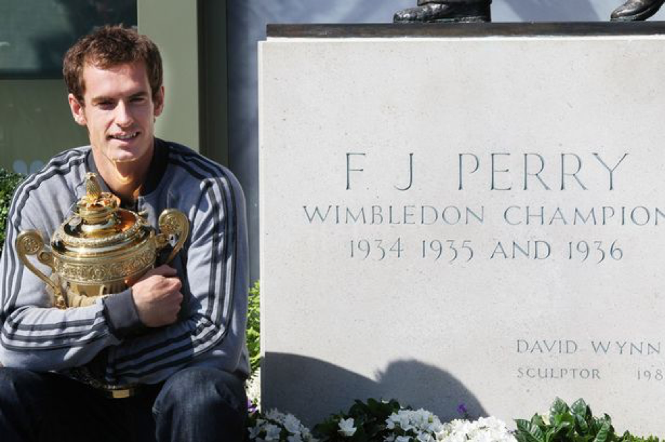 Over time, not only has Perry’s status as a British sporting hero changed, but also the meanings and values associated with his statue. Beyond Perry’s successes, the fervent eulogizing of him partly reflects British post-war decline, both on and off court, and the felt need to accentuate a glorious past. His statue has developed to become a shrine of almost religious significance for British tennis fans and tourists, who take photographs by it in their thousands. Indeed, Andy Murray posed for several after he won Wimbledon in 2013 and became the first British male for seventy-seven years to become singles champion. The back cover of his autobiography, entitled Seventy-Seven: My Road to Wimbledon Glory, shows a photo of him tightly hugging his Wimbledon trophy sat next to the Perry statue. Thus, the strength of Perry’s image and associated traditions – posing for photographs by his statue, mentioning his name in narratives around British tennis talent development (e.g. “finding the next Fred Perry”), and connecting his name with the AELTC and the Wimbledon Championships – has grown over time, as the values and meanings associated with his success during the inter-war “golden age” of tennis have increased in importance. Indeed, the site of him in full-length flannel trousers and plimsolls invokes nostalgia for the “good old days” of amateur tennis and British success: the characters, the rivalries, the “gentlemanly” spirit and the political significance of victories at a time when tennis ranked as a sport of real international significance.